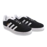 La Adidas Gazelle è la sneaker iconica che unisce un’estetica rétro a un comfort contemporaneo. Questa versione si distingue per la tomaia in morbido suede nero, impreziosita dalle classiche 3 strisce in bianco e dal logo Gazelle in oro sul lato esterno. La suola in gomma bianca, caratterizzata dal tipico pattern antiscivolo, assicura aderenza e resistenza all’usura, mentre la linguetta e il tallone in materiale sintetico a contrasto valorizzano il look essenziale della scarpa.
