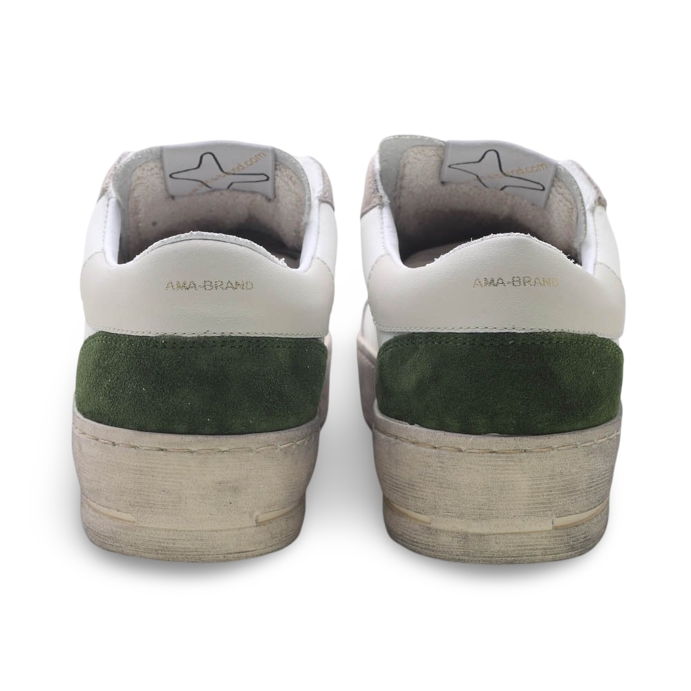 Lasciati conquistare dall’eleganza rilassata delle sneakers AMA Brand Deluxe, pensate per chi ama distinguersi con un look raffinato e contemporaneo. Questo modello si caratterizza per una combinazione di materiali pregiati e una palette cromatica ricercata, con dettagli in pelle bianca, inserti in suede grigio e un tocco di verde che dona personalità alla scarpa.