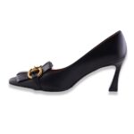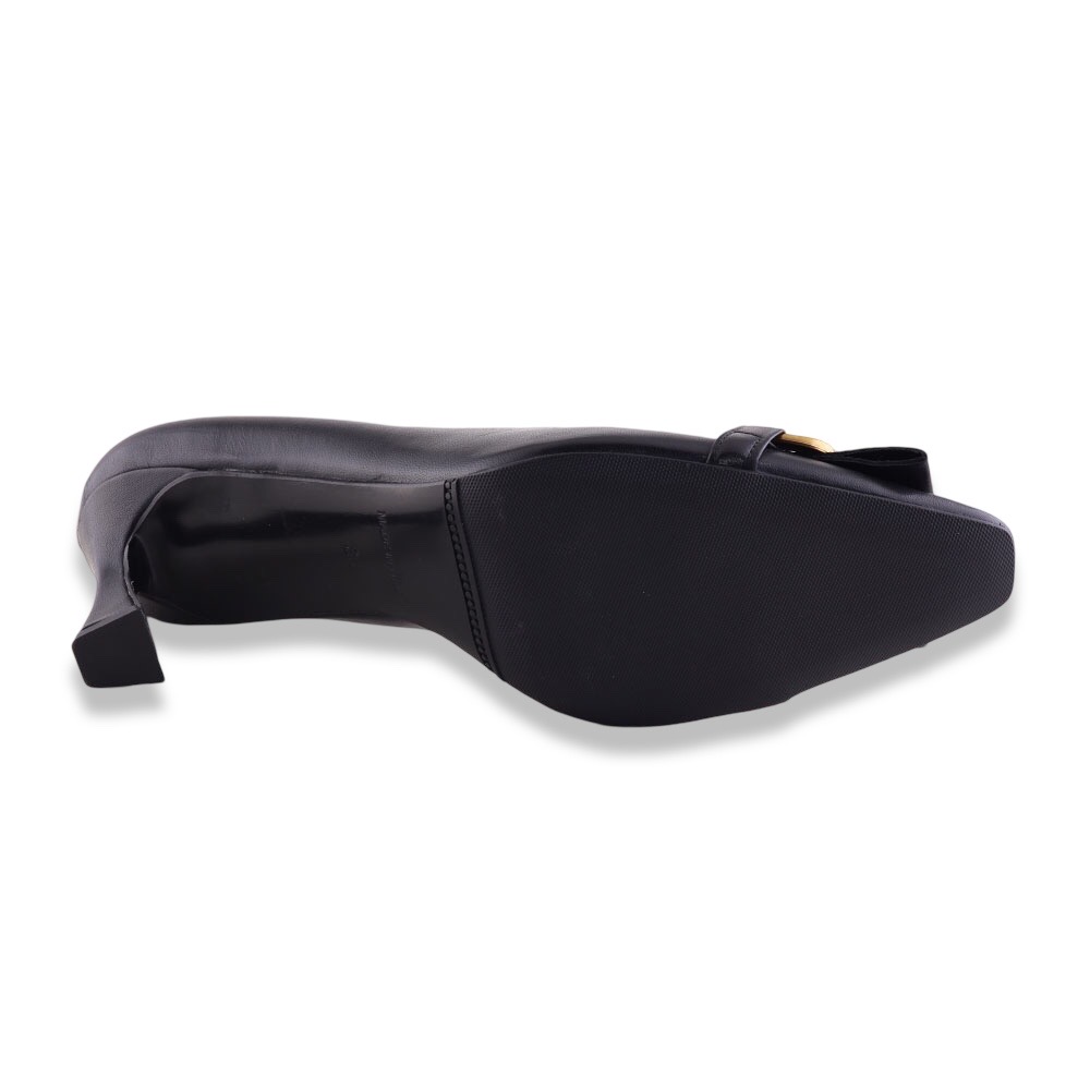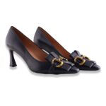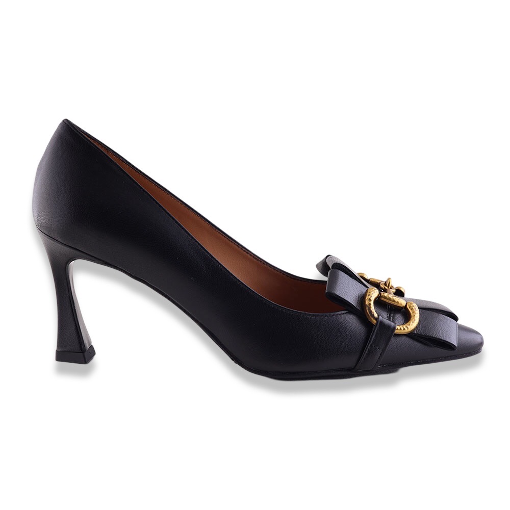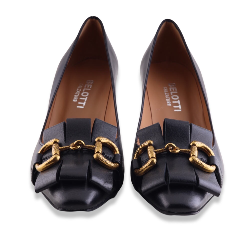 Décolleté molto femminile completamente in pelle. Frangia con morsetto sulla punta. Fondo in gomma. Made in Italy.