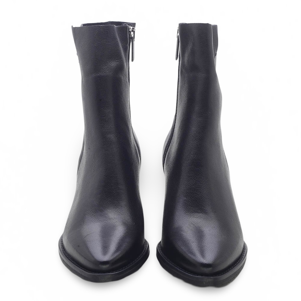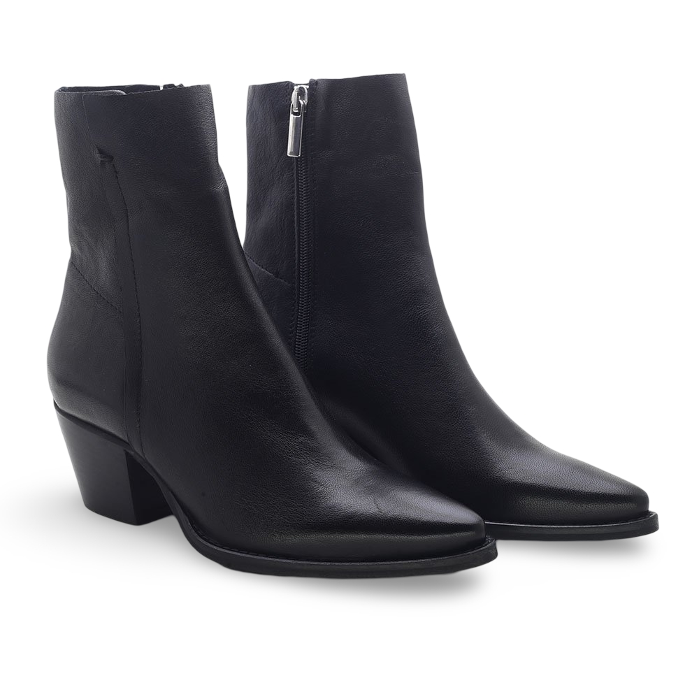 Un tocco di classe per ogni occasione. Questi stivaletti in pelle nera Made in Italy sono la scelta perfetta per chi cerca un look sofisticato e versatile. Il loro design essenziale, impreziosito dalla punta affusolata e dal tacco comodo, li rende ideali per un’eleganza senza tempo.