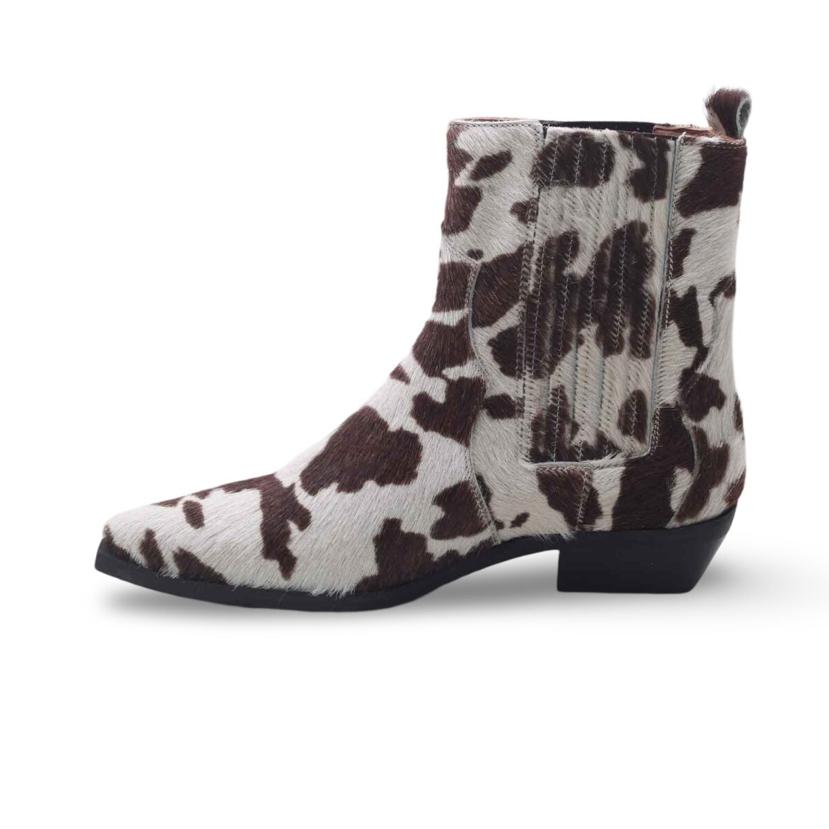 Un tocco wild per chi ama distinguersi: questi stivaletti da donna in cavallino effetto “mucca” sono il perfetto mix tra moda audace e qualità artigianale italiana. Realizzati con vera pelle e rifiniti a mano, regalano un look deciso e contemporaneo senza rinunciare al comfort.