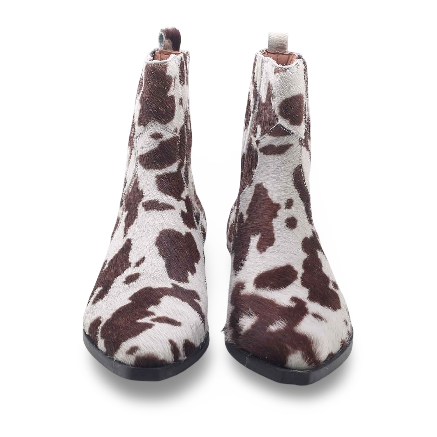 La linea affusolata con punta leggermente squadrata, il pratico elastico laterale e il fondo in gomma resistente garantiscono una calzata facile e una camminata sicura. Il design “cow print” li rende protagonisti assoluti del tuo outfit: abbinali a jeans skinny, gonne in denim o total black per uno stile urban-chic dal carattere inconfondibile.