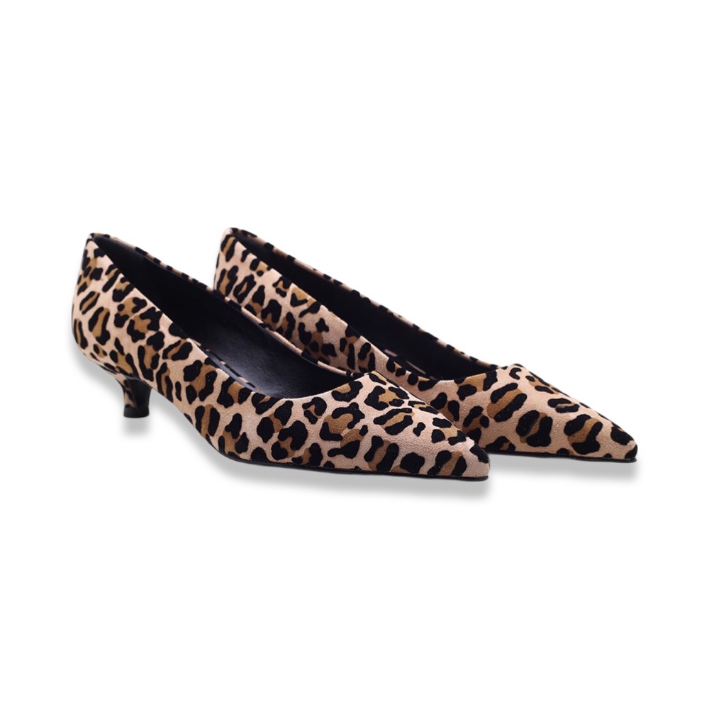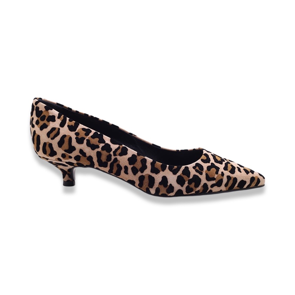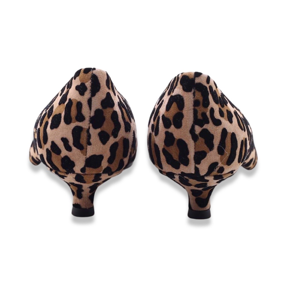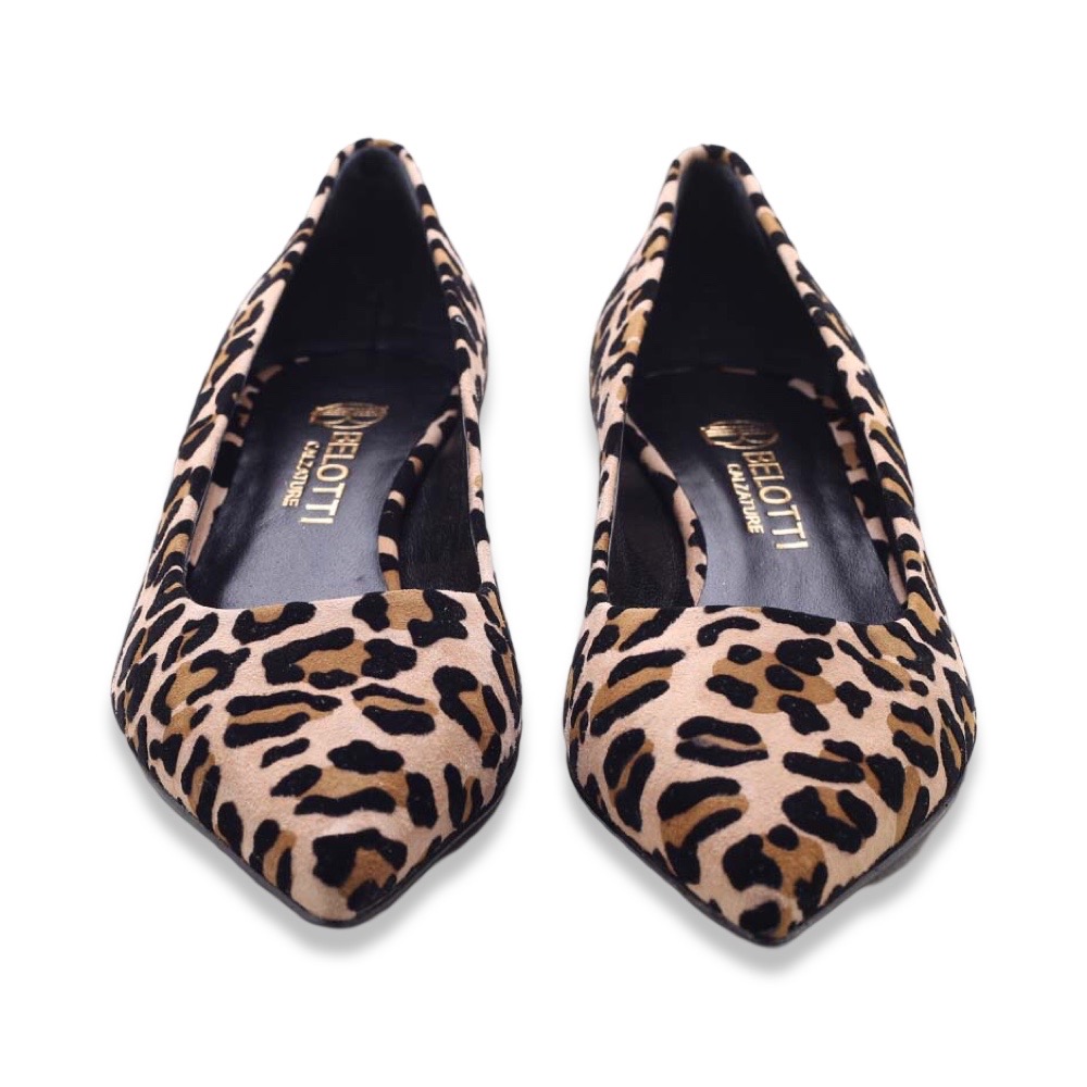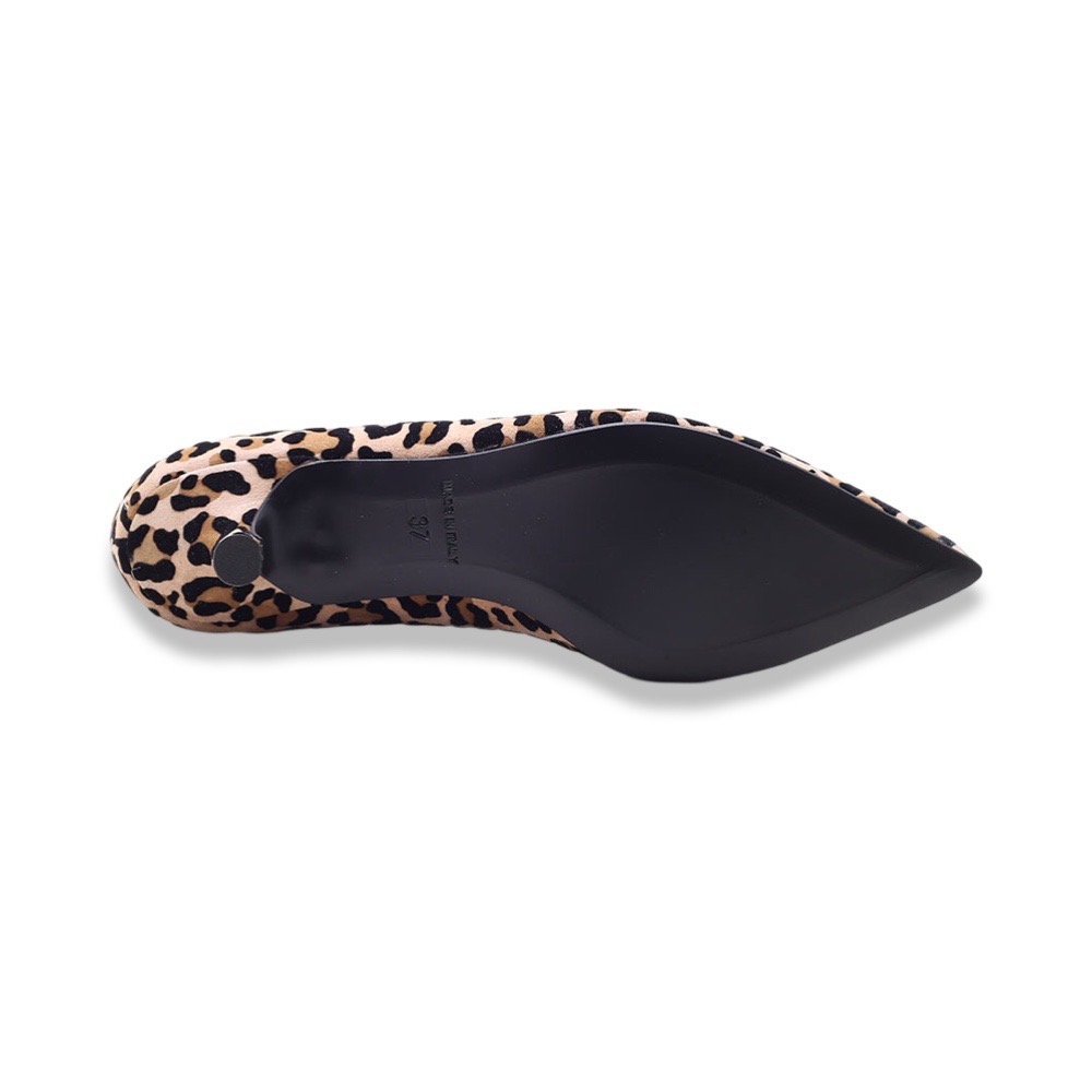 Décolleté completamente in pelle, tomaia stampa leopardo e sottopiede leggermente imbottito. Fondo in gomma. Made in Italy.
