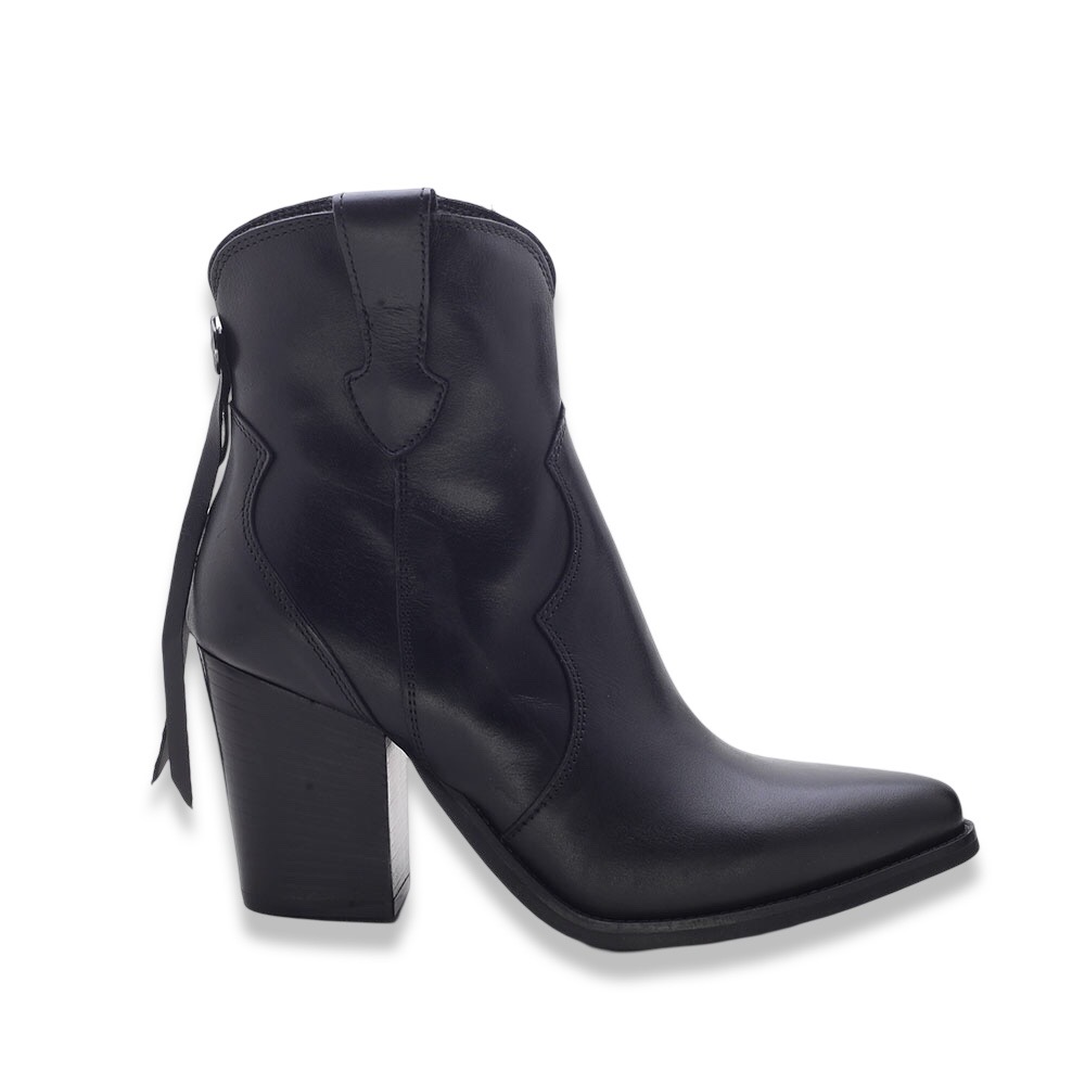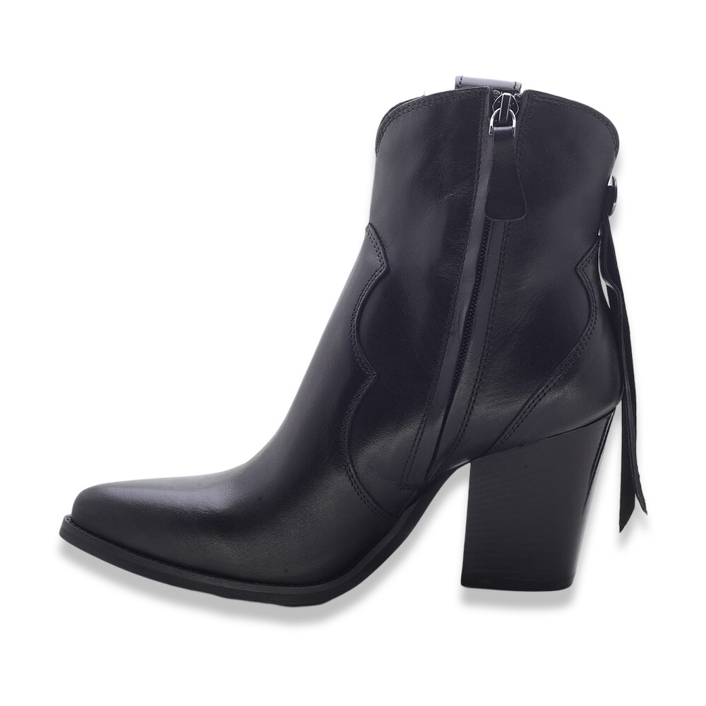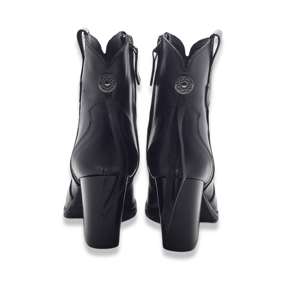 Stivaletti Texani Neri in Pelle con Dettagli Western – Made in Italy