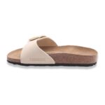 La tomaia in pelle liscia color Ecru dona luminosità al piede e si adatta perfettamente a qualsiasi outfit estivo. Il plantare anatomico in sughero e lattice, fiore all’occhiello del brand, garantisce sostegno e comfort per tutta la giornata. La suola in EVA con battistrada nero crea un elegante contrasto visivo e assicura leggerezza e stabilità.