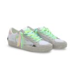 ✔ Tomaia in pelle premium – Morbida e resistente, con dettagli metallici e fluo.