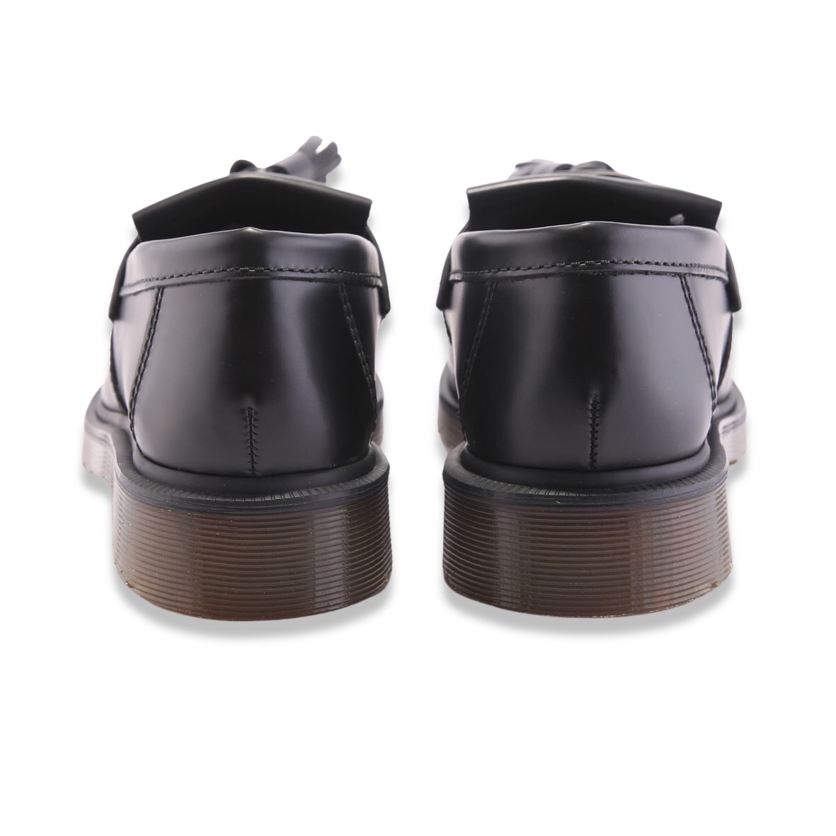 Mocassino Dr. Martens Adrian  Black. Realizzata in pelle Smooth doppia nappina e la frangia in stile kiltie, con guardolo Goodyear, tomaia e suola cucite assieme con cucitura a Z termosigillata, resistente a olio e grasso e dotata di ottime proprietà antiabrasione e antiscivolo. Suola classica.