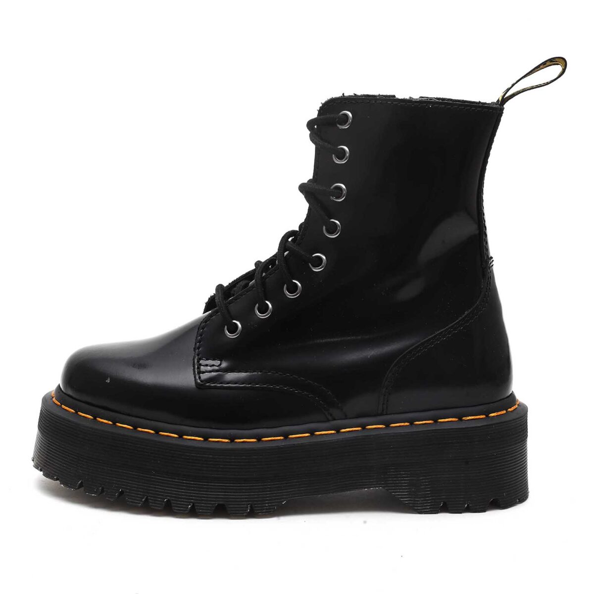 Anfibio Dr. Martens Jadon Polished Smooth Black. Classica pelle Polished Smooth Dr. Martens, un materiale leggermente strutturato e molto durevole e 8 occhielli. Bordi scanalati, fettuccia posteriore con logo, cuciture gialle e suola a cuscinetto.