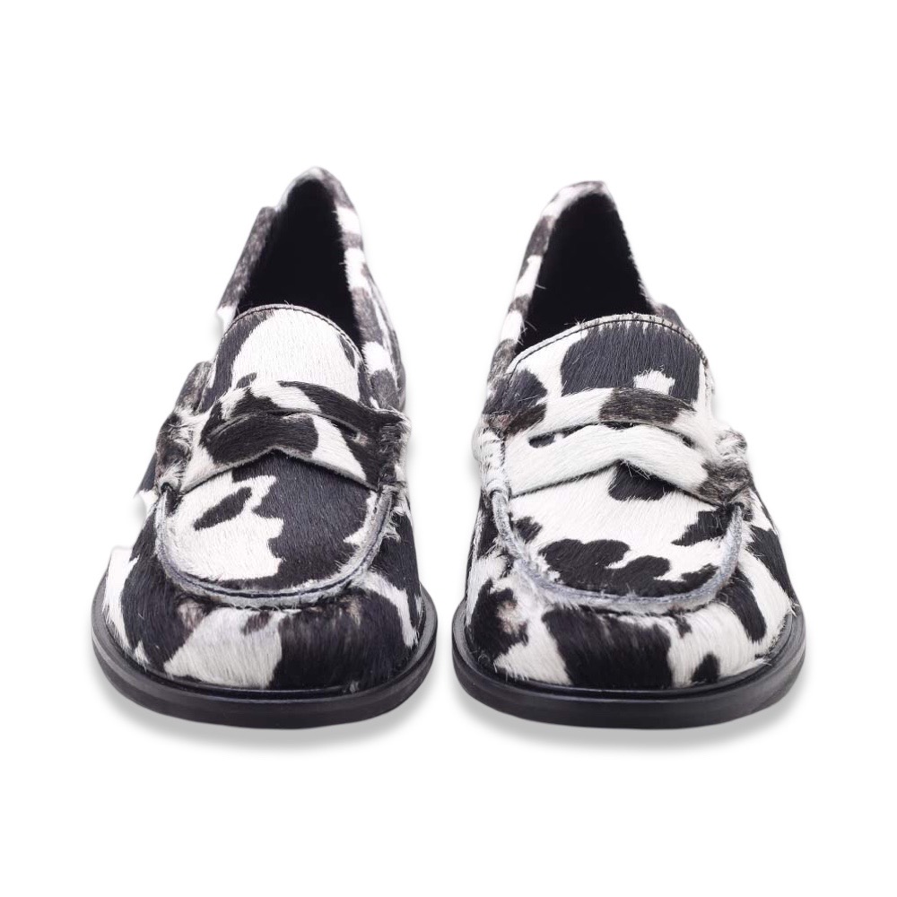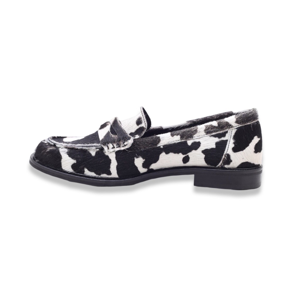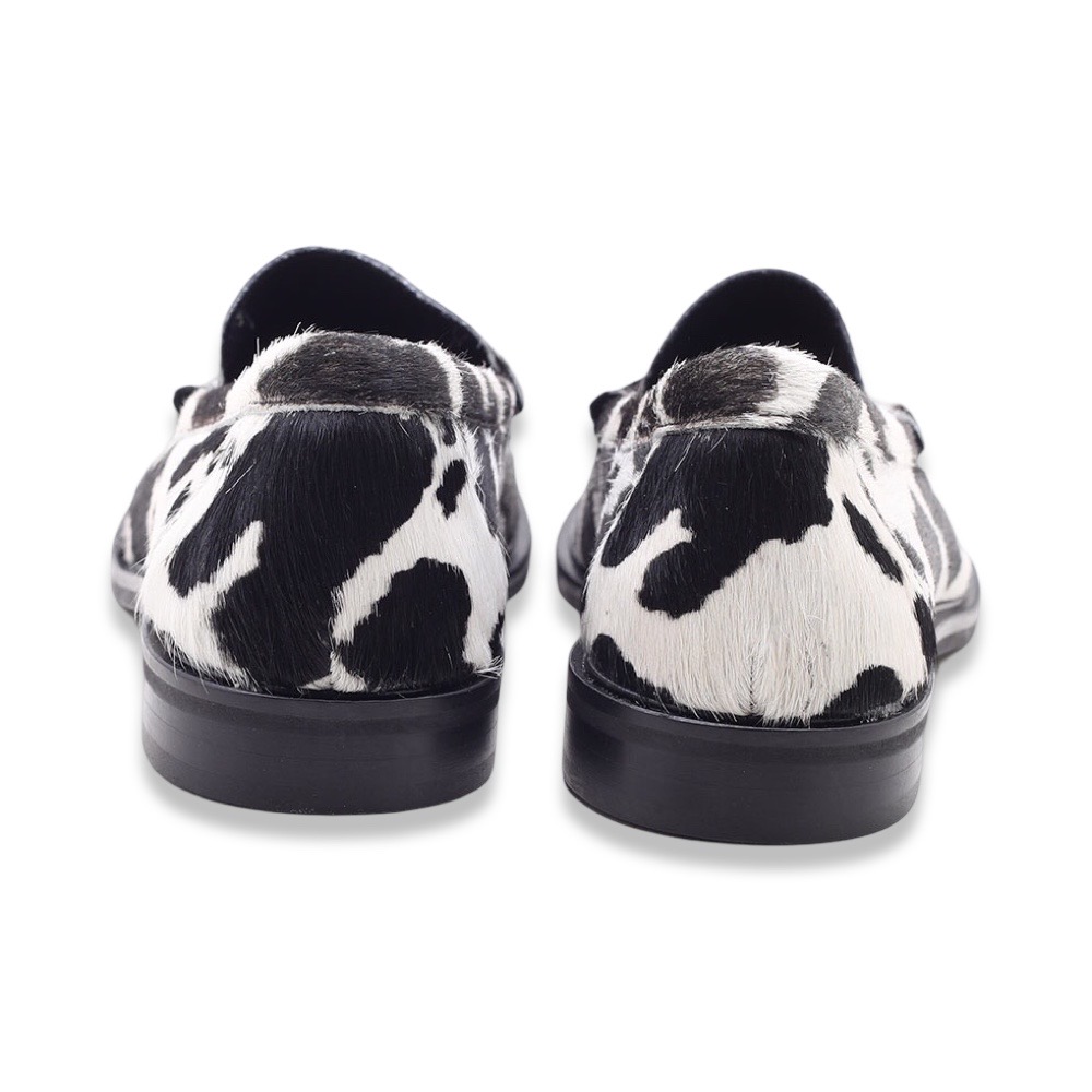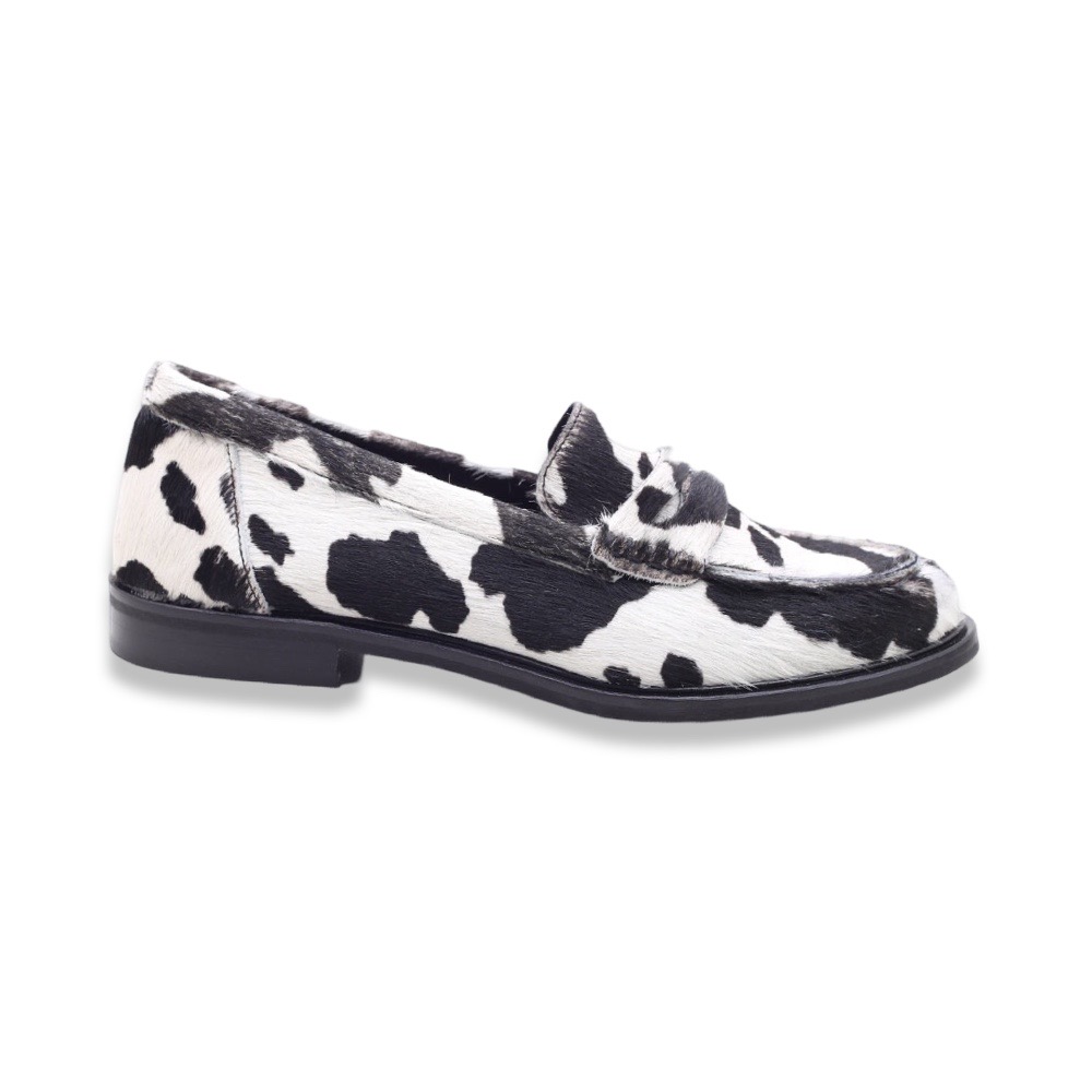 Distinguiti con grinta e originalità grazie a questi mocassini da donna in cavallino con stampa animalier effetto mucca, realizzati artigianalmente in Italia. Una calzatura che osa, perfetta per chi ama sperimentare e aggiungere un tocco audace ai propri outfit.