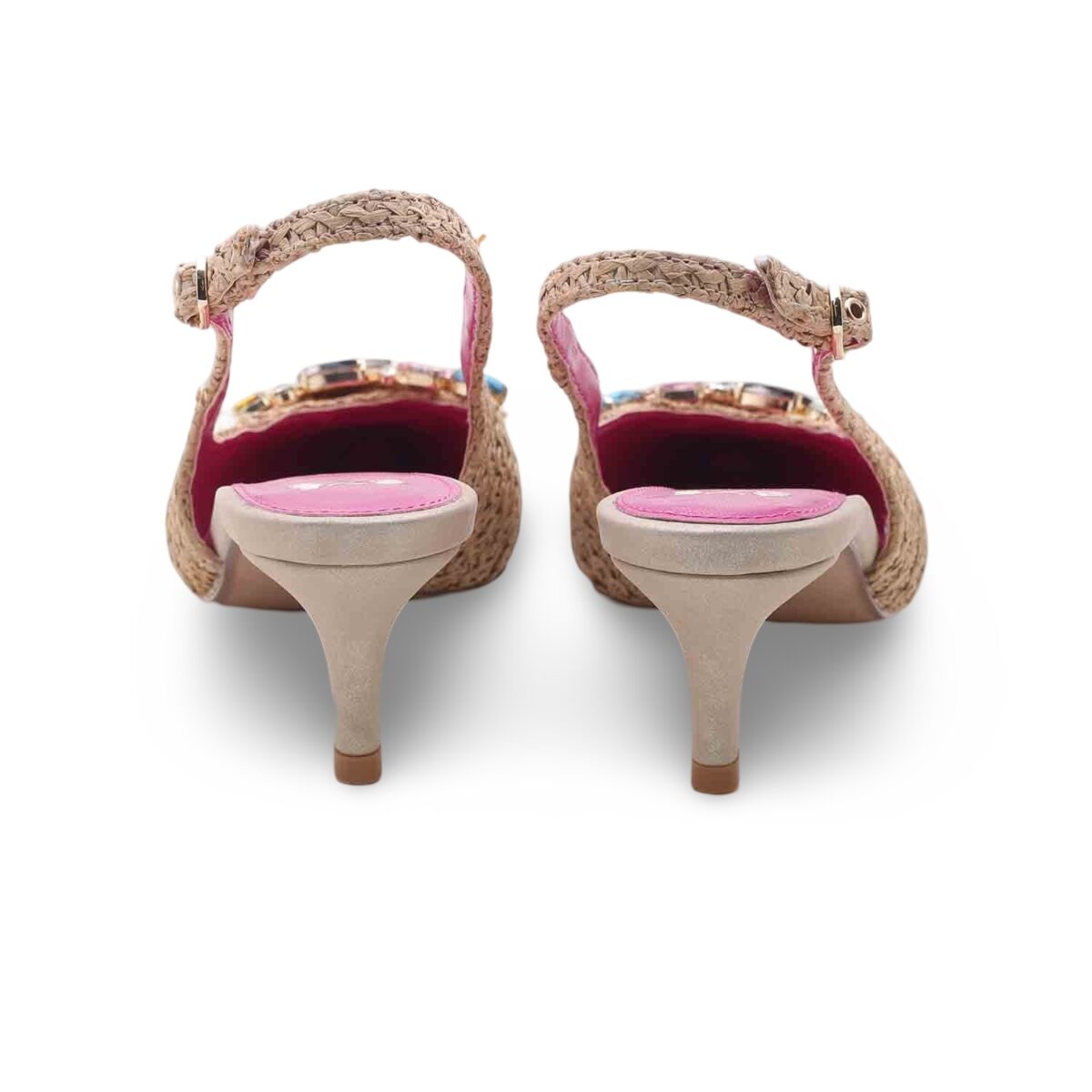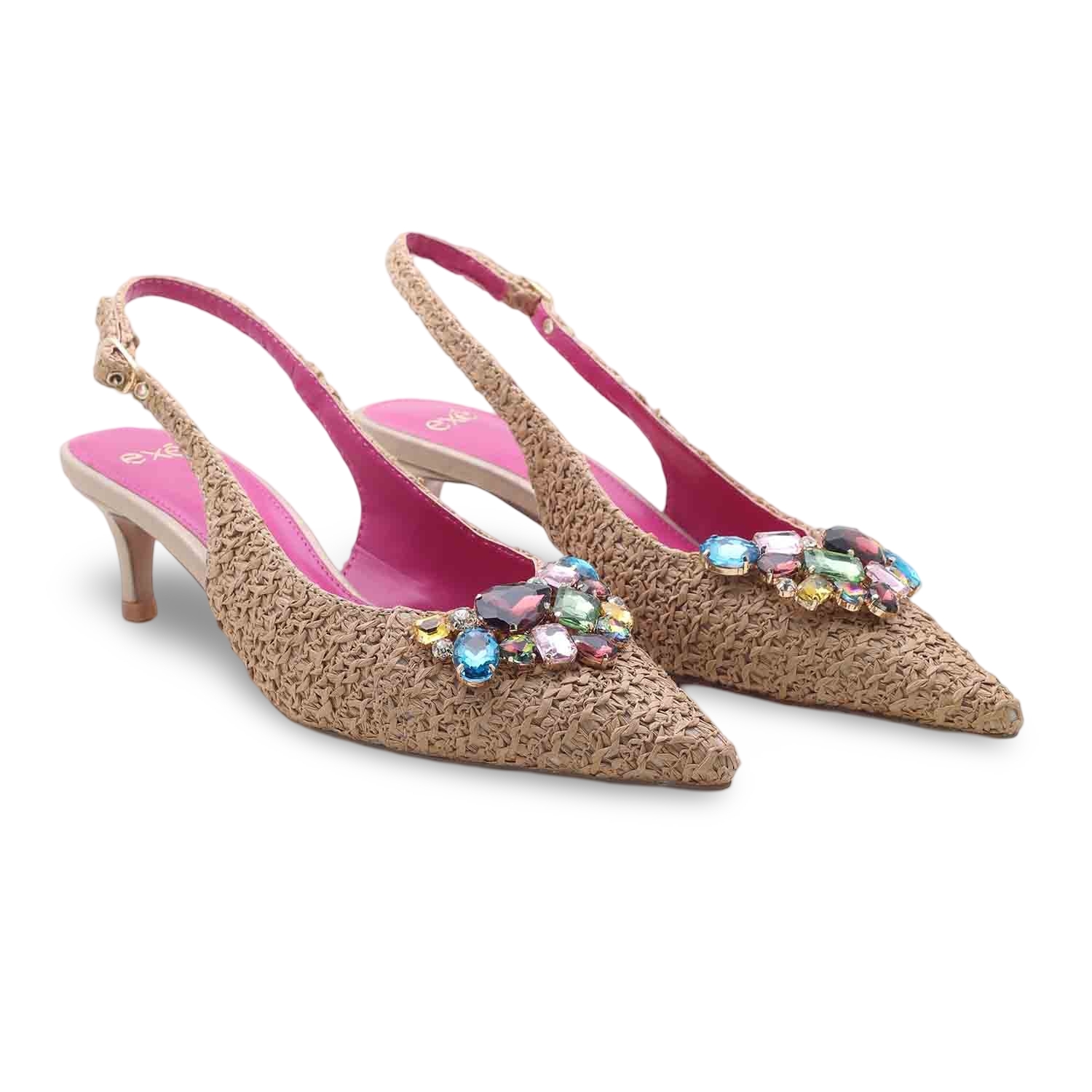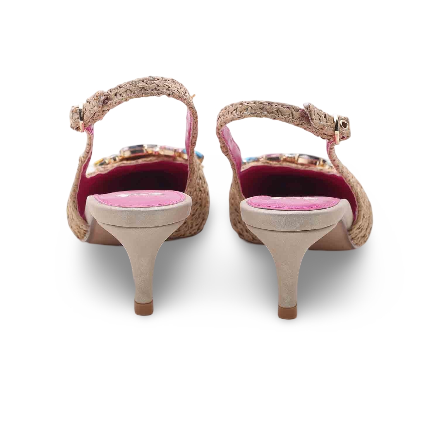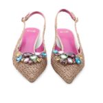Décolleté slingback in rafia con pietre gioiello – Chic naturale, glamour assicurato
