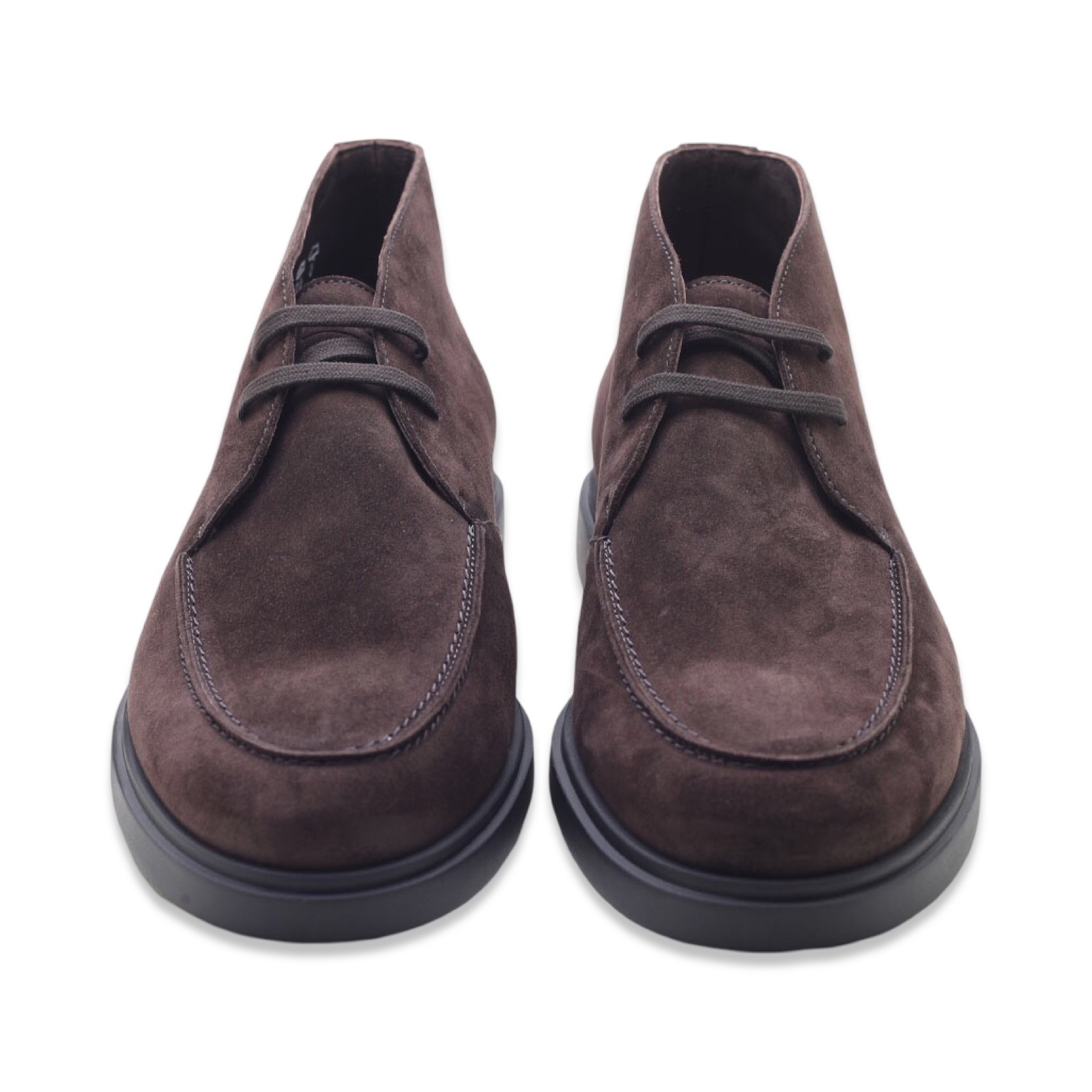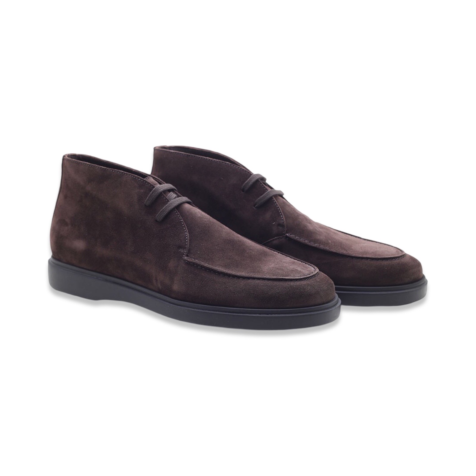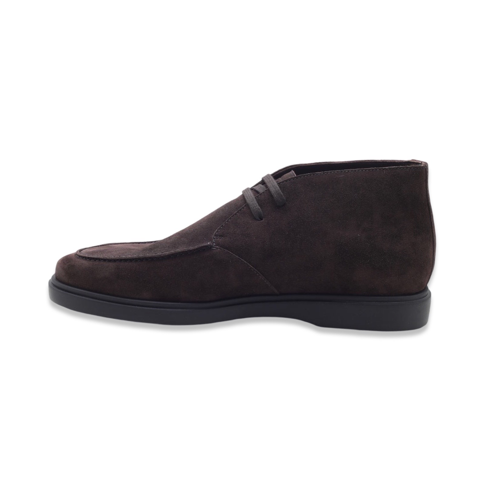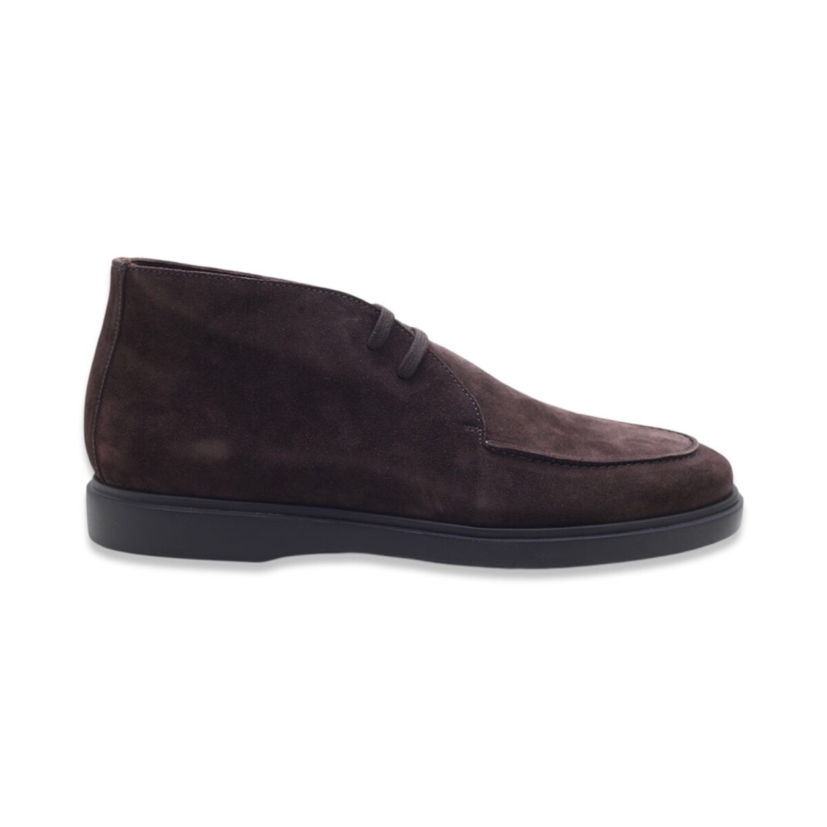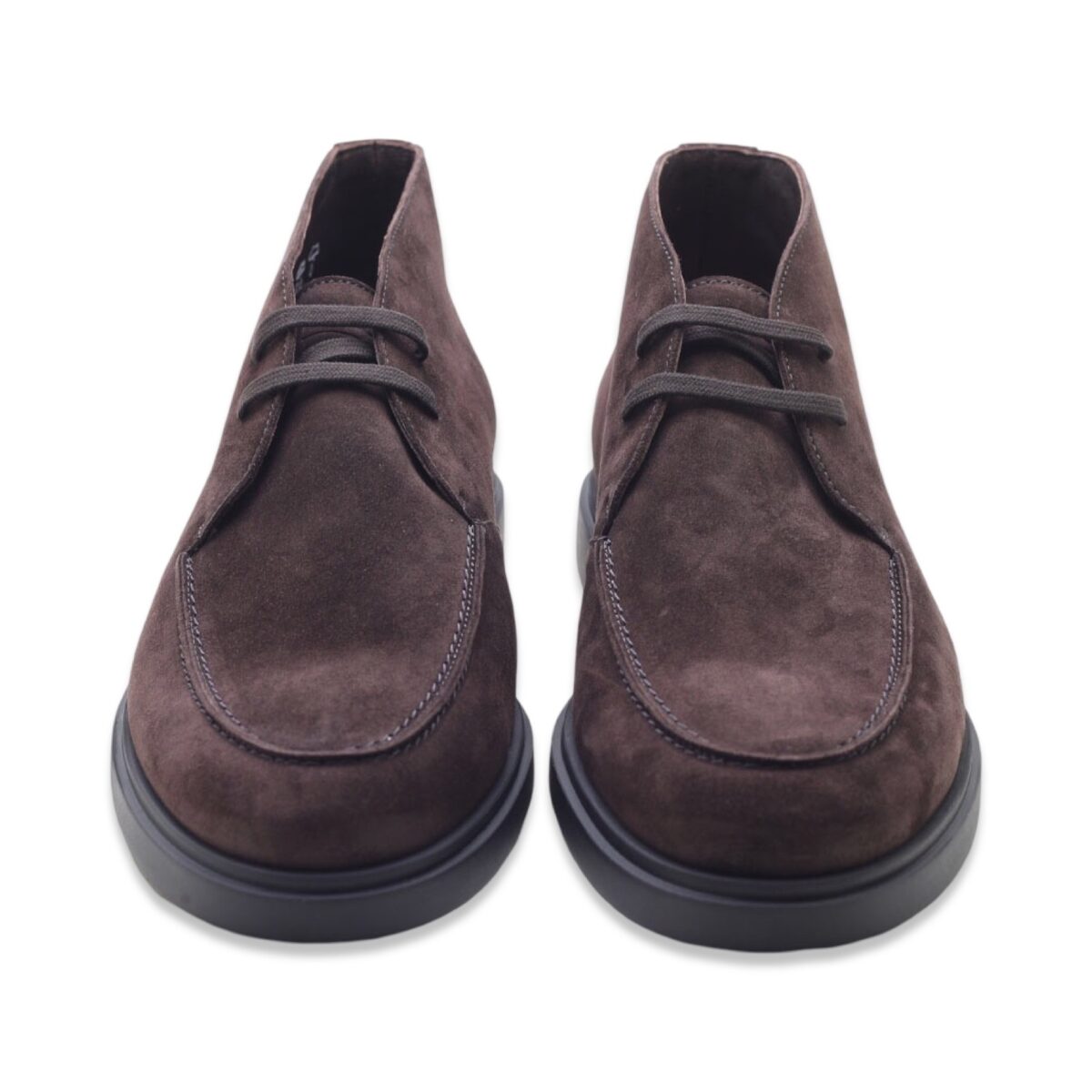Stringata in pelle scamosciata con due fori. Tomaia con cucitura in tinta. Fodera e sottopiede in pelle, suola in gomma. Made in Italy