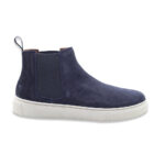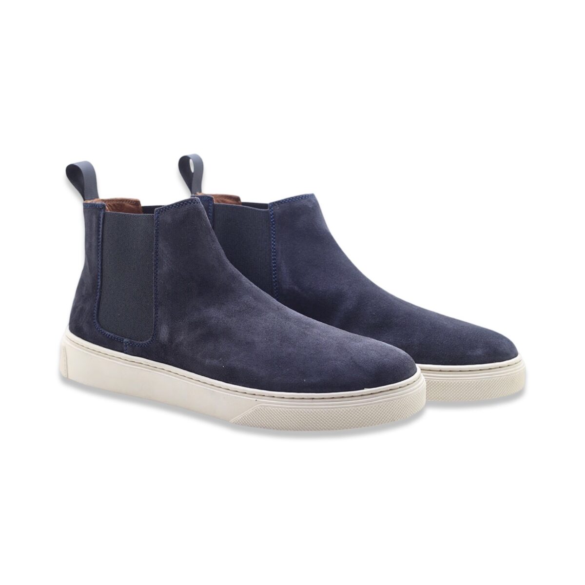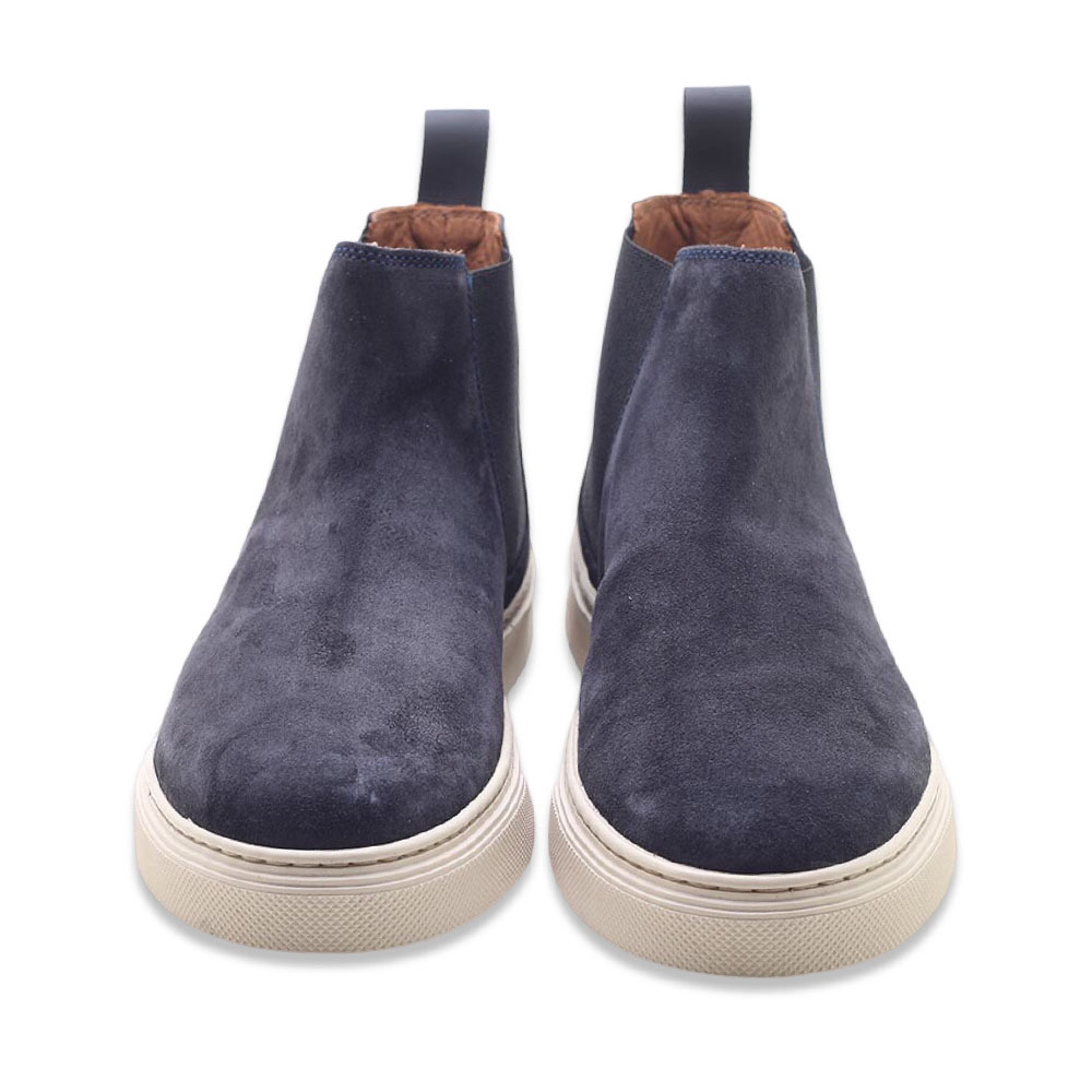 Polacchino in pelle scamosciata con pannelli elasticizzati laterali e fettuccia posteriore. Interno e sottopiede estraibile in pelle. Fondo in gomma. Made in Italy