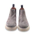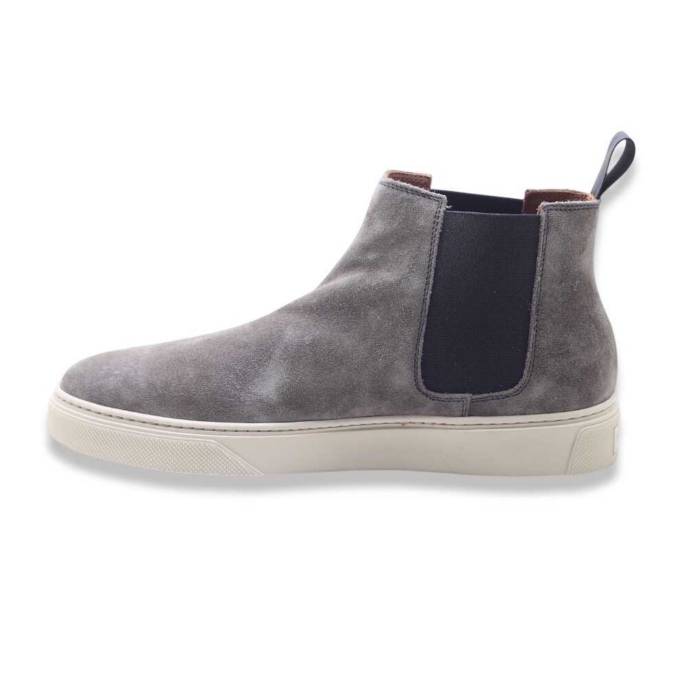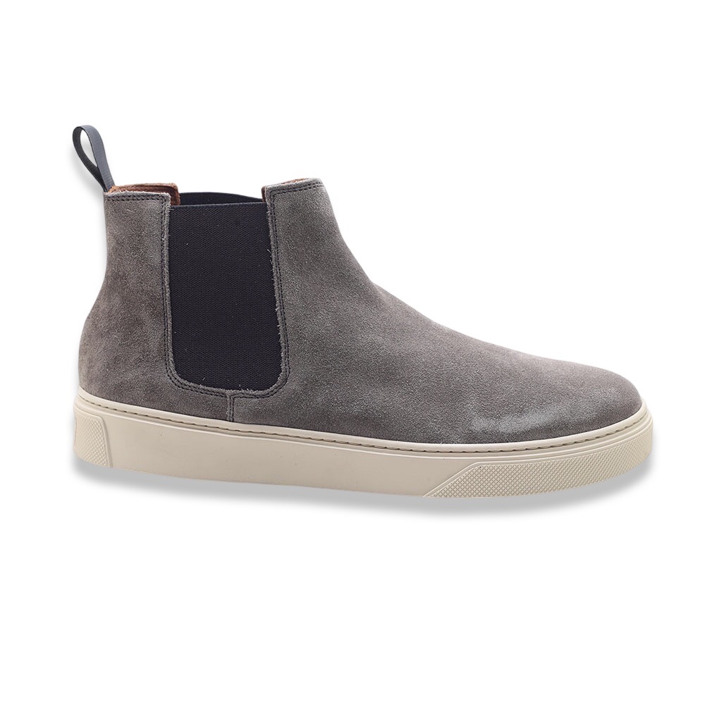 Polacchino in pelle scamosciata con pannelli elasticizzati laterali e fettuccia posteriore. Interno e sottopiede estraibile in pelle. Fondo in gomma. Made in Italy