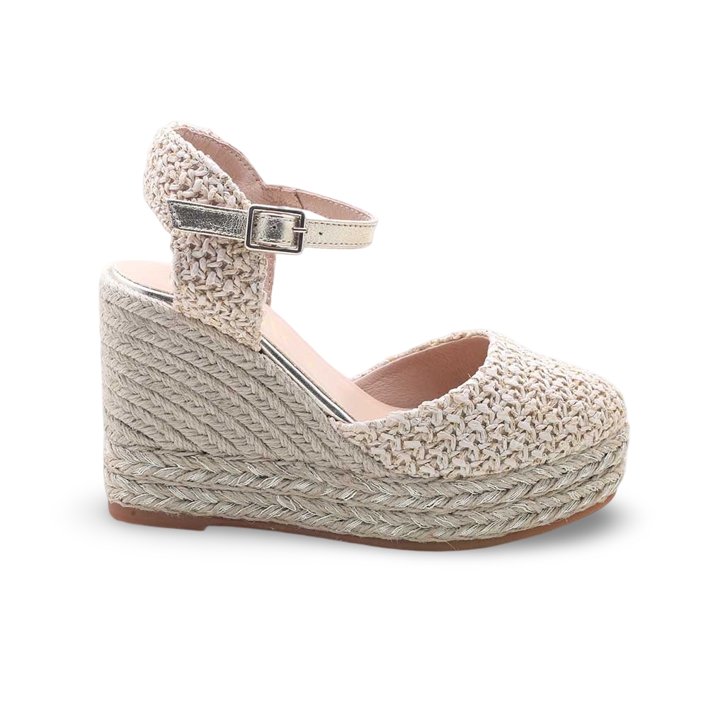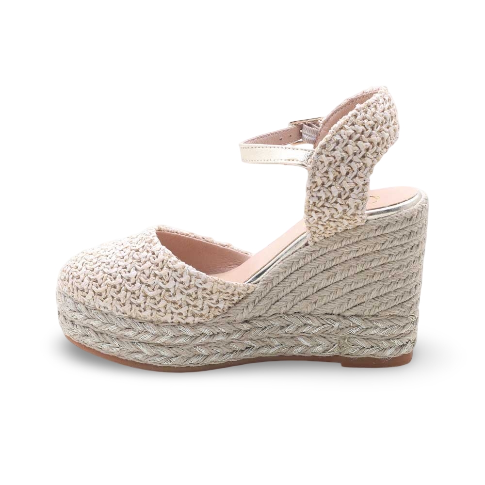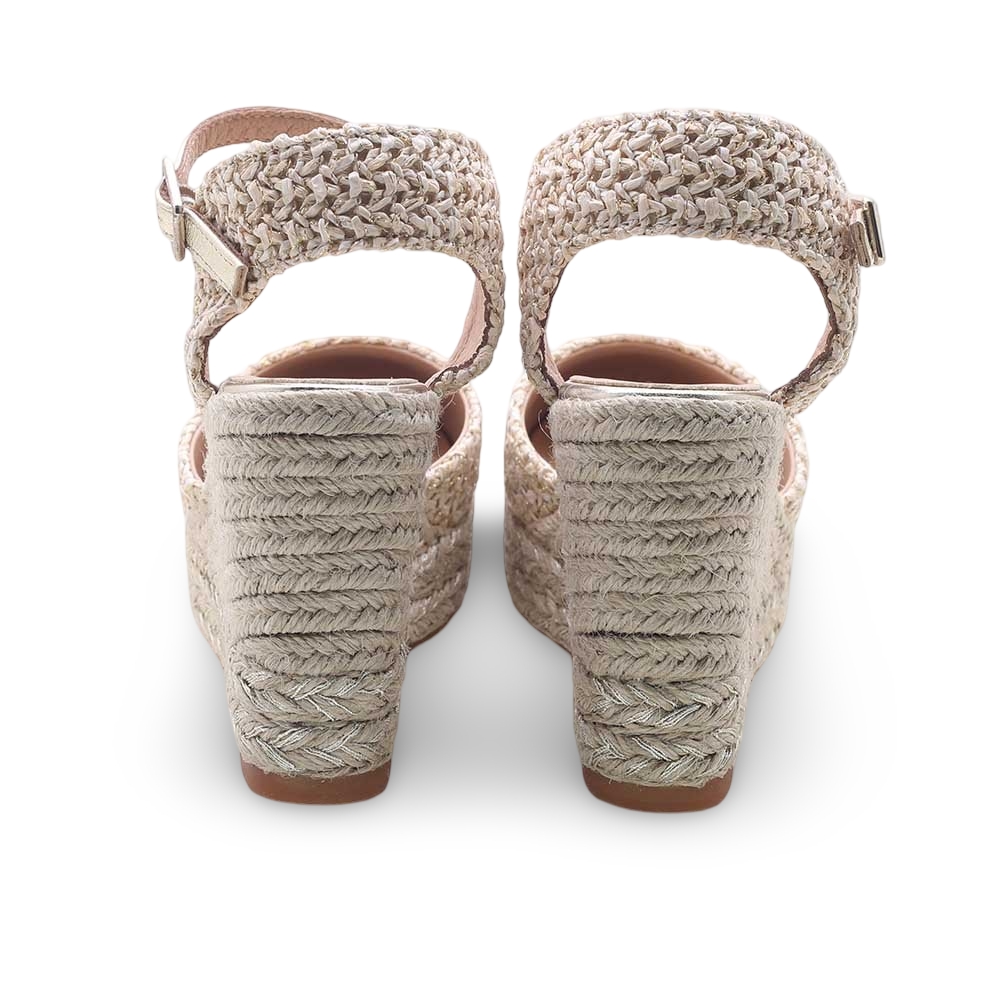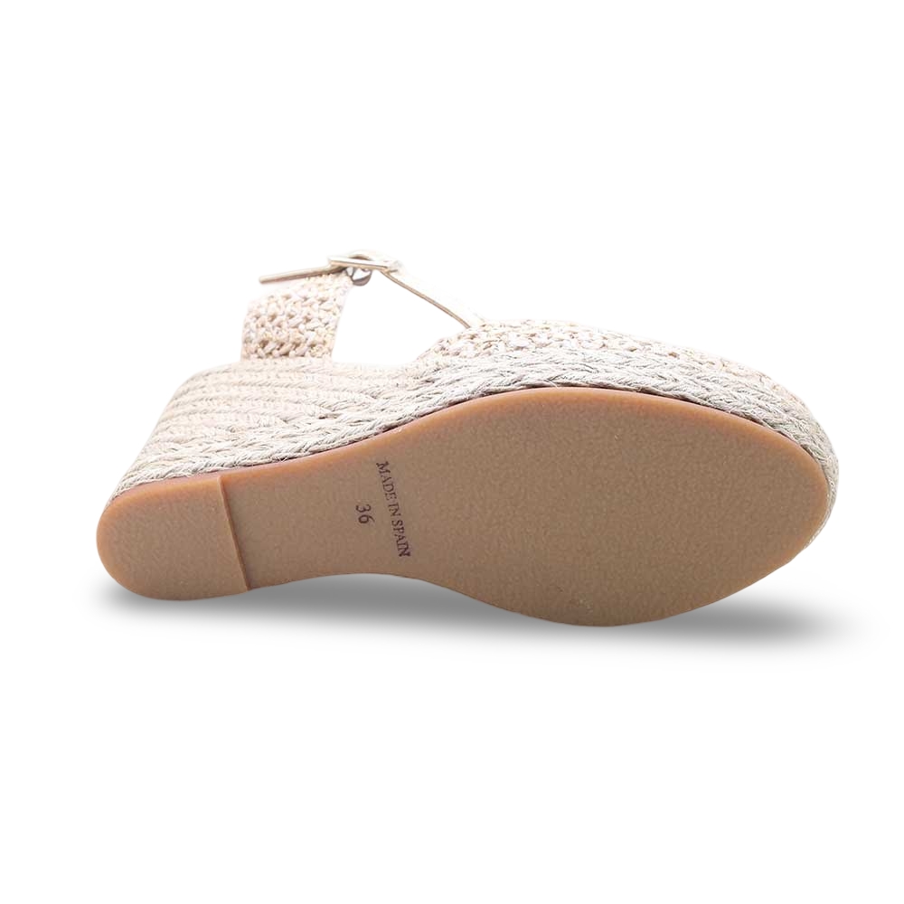 • Zeppa in corda naturale intrecciata, alta ma stabile, per slanciare la silhouette con il massimo del comfort.