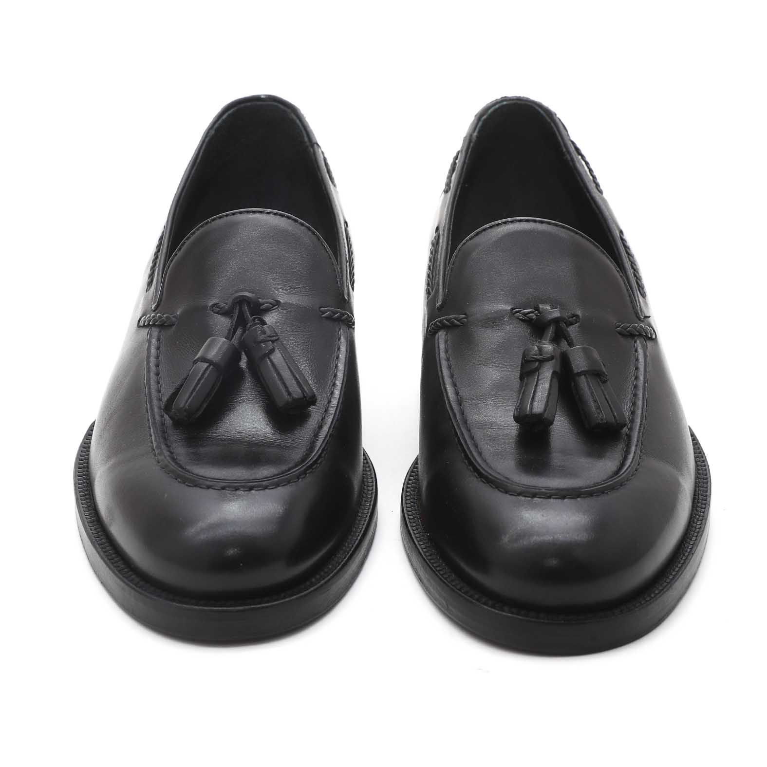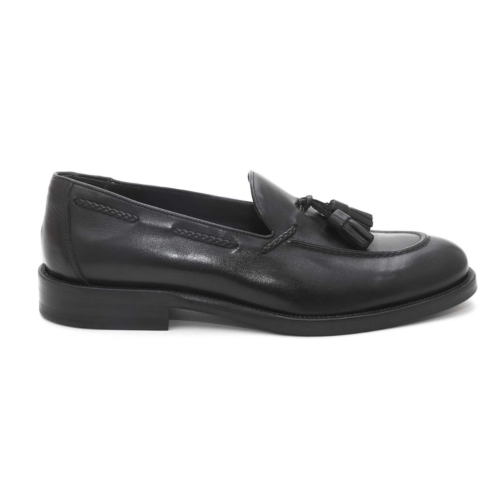 Mocassino in pelle morbida con fondo in cuoio e nappina decorativa. Made in Italy.