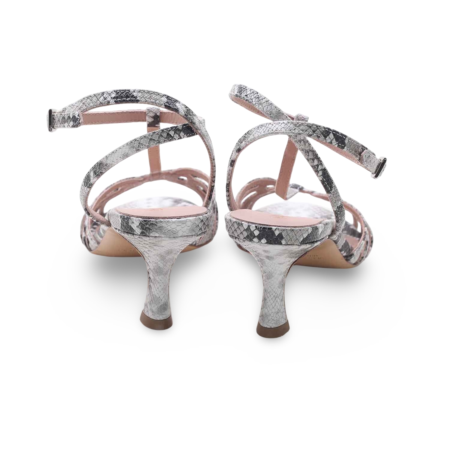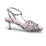 Sandali in pelle effetto pitonato con tacco a rocchetto – Made in Italy