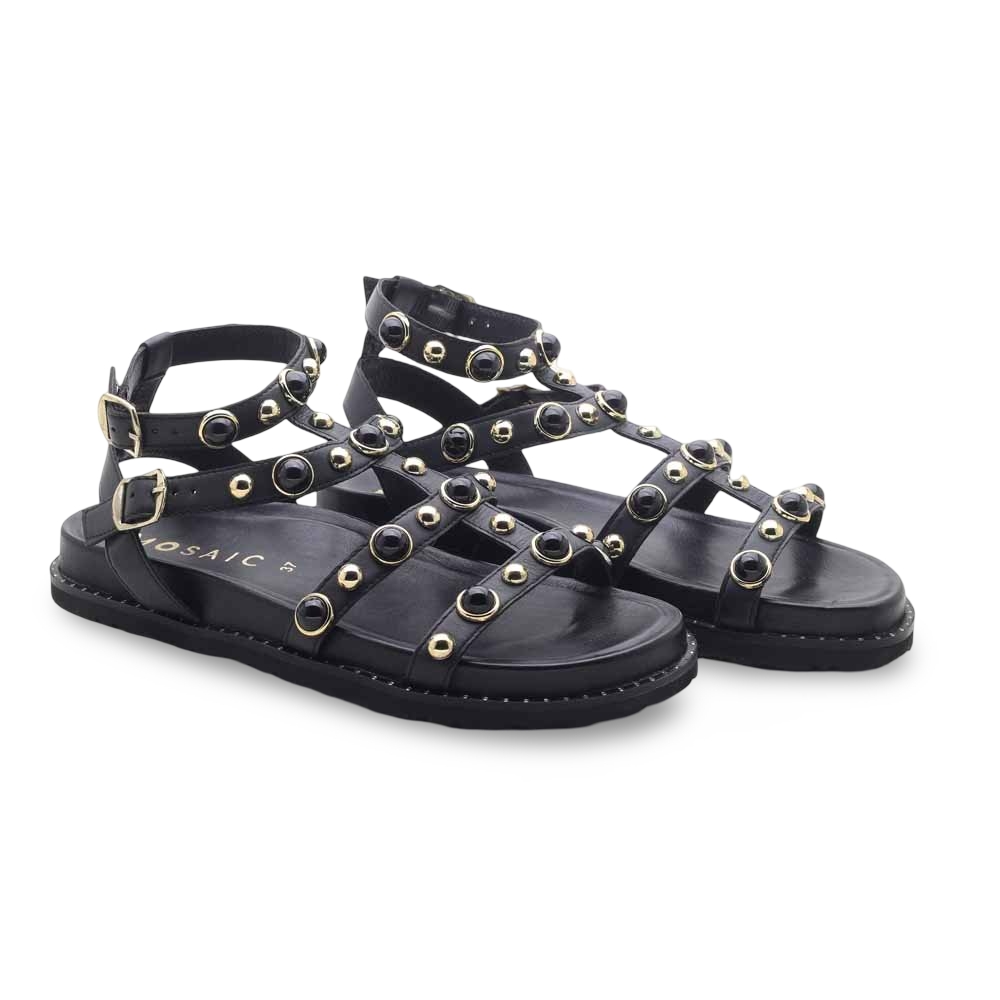 Mosaic F110 Nero – Sandali gioiello in stile gladiatore