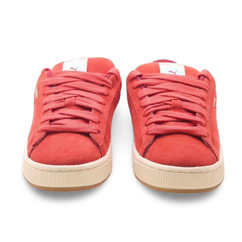Una scarpa che non passa inosservata. Le nuove Puma Suede XL in versione rosso corallo uniscono il fascino retrò delle sneaker anni ’90 alla freschezza di un design attuale e deciso. La tomaia in suede rosso acceso, morbida e resistente, si abbina perfettamente al formstripe beige e ai lacci XL che donano un tocco urban e originale.