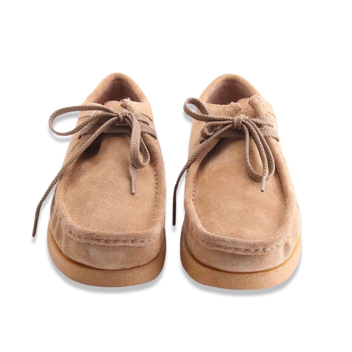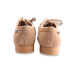 Mocassino stringato completamente in pelle, tomaia in morbidissima pelle scamosciata con struttura tubolare. Cucito a mano artigianalmente , taglio a punta moc e cuciture tono su tono. Fodera in pelle e suola in gomma Para 2 strati per garantire elevata elasticità e resistenza all’abrasione, all’acqua e agli acidi ed e’ molto flessibile.