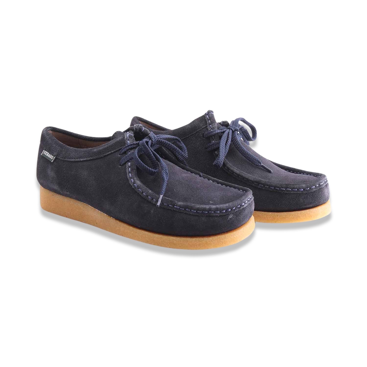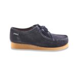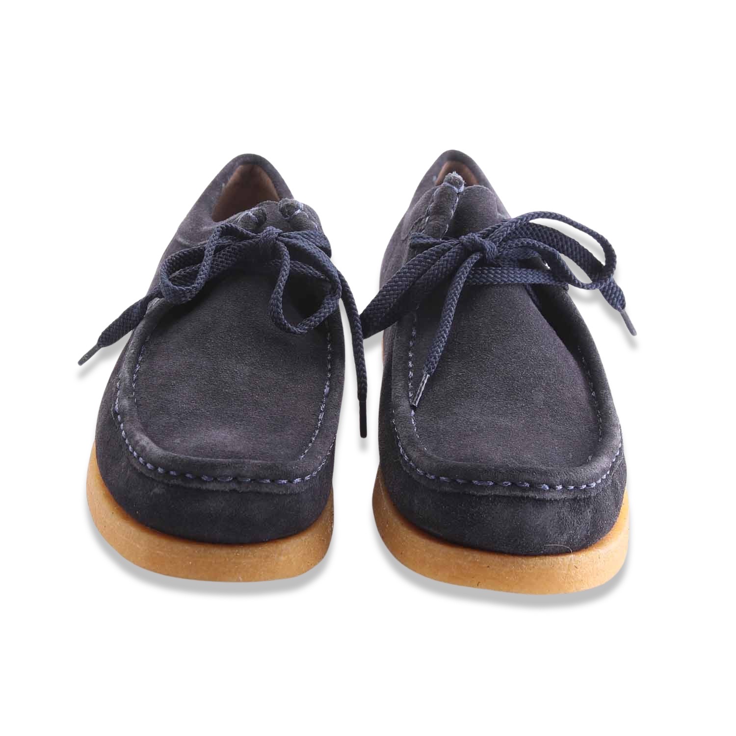Mocassino stringato completamente in pelle, tomaia in morbidissima pelle scamosciata con struttura tubolare. Cucito a mano artigianalmente , taglio a punta moc e cuciture tono su tono. Fodera in pelle e suola in gomma Para 2 strati per garantire elevata elasticità e resistenza all’abrasione, all’acqua e agli acidi ed e’ molto flessibile.