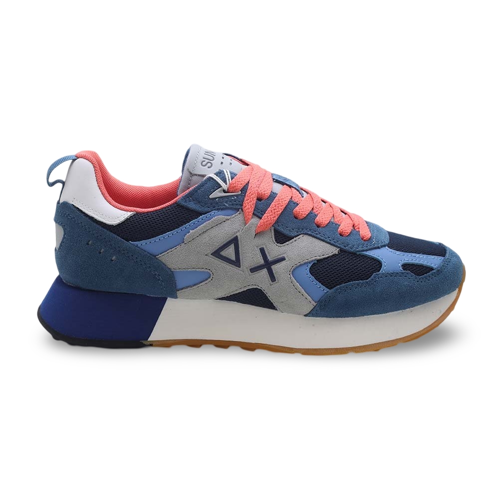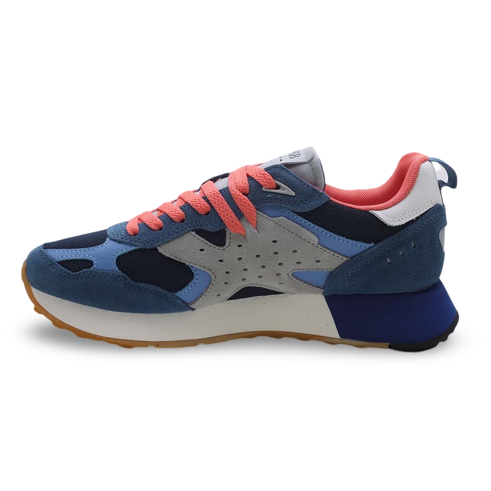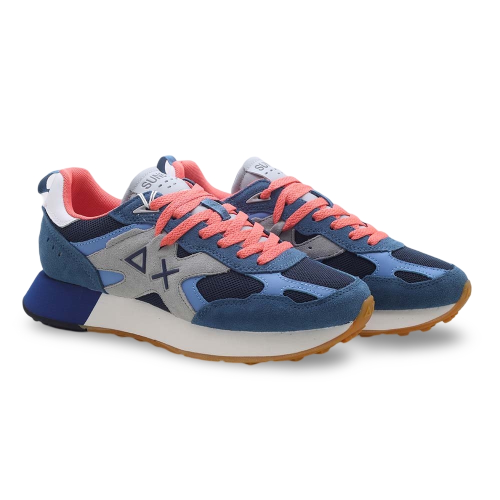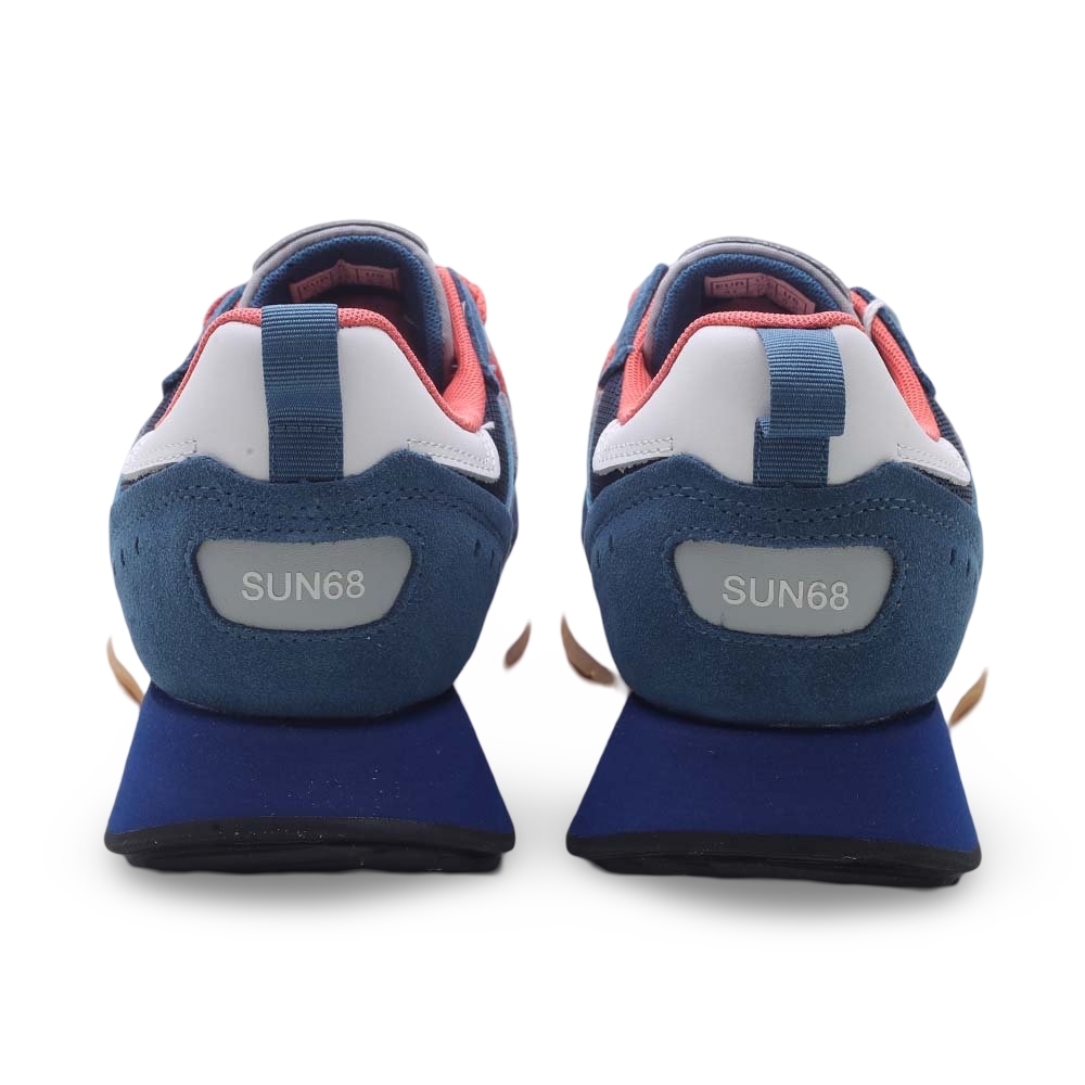 Sneakers Uomo Sun68 in Camoscio e Mesh – Blu & Grigio con Dettagli Corallo